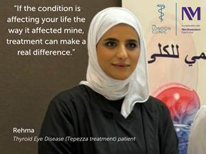 The London Clinic has become the first UK hospital to treat a patient (outside of clinical trials) with a ground-breaking anti-body infusion for thyroid eye disease, which can cause double vision, pain and severe bulging of the eyes.